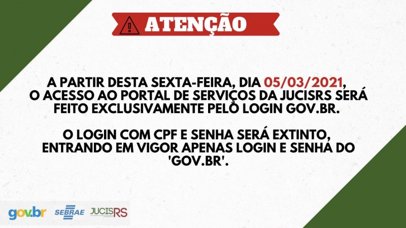 A partir desta sexta-feira, dia 05/03, o usuário da Junta Comercial do RS passará a acessar o Portal de Serviços pelo login GOV.BR.