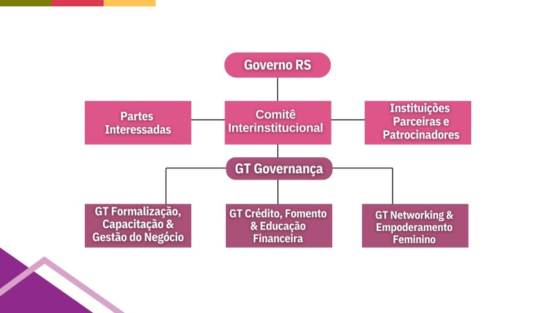 E representantes da Assembleia Legislativa do Rio Grande do Sul, por intermédio da Frente Parlamentar do Empreendedorismo Feminino e da Força da Mulher Gaúcha, no âmbito do Estado do Rio Grande do Sul, e de órgãos e entidades públicas ou privadas, instituições de ensino, organizações e movimentos sociais, com atuação relacionada à temática das mulheres e do empreendedorismo.